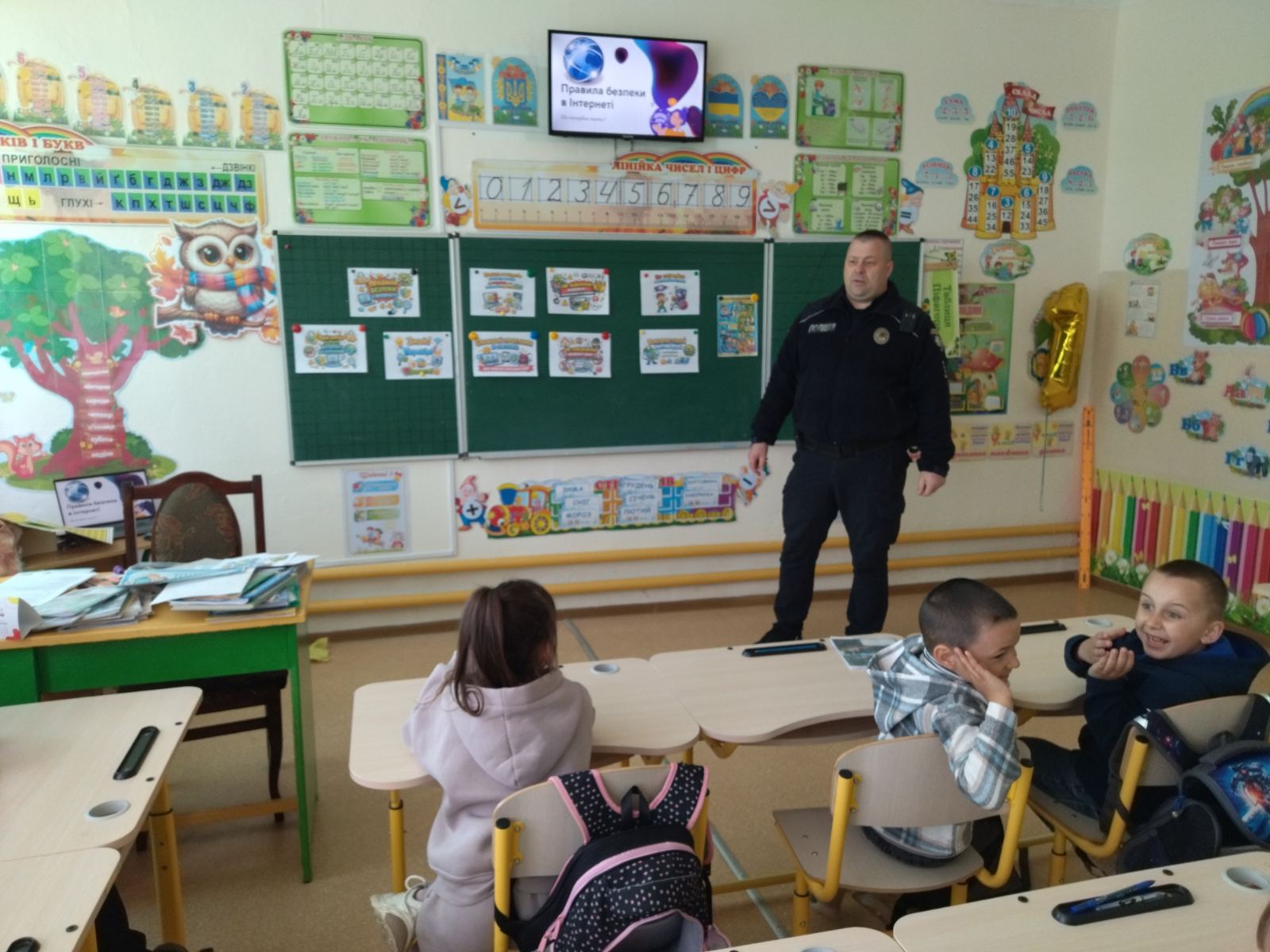 Від запрошеного працівника поліції , учні дізналися про основні небезпеки в інтернеті та правила безпечної поведінки. Обговорили захист особистих даних, спілкування з незнайомцями й дії у разі онлайн-загроз.
